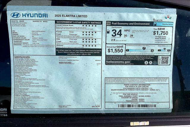 Serenity White 2025 Hyundai Elantra Limited FWD CVT I4At Homer Skelton Hyundai we are dedicated to providing exceptional service and a great car-buying experience. With our extensive selection of Hyundai vehicles you'll find the perfect vehicle to meet your lifestyle and budget. Our knowledgeable and friendly team is here to assist you every step of the way ensuring that you make an informed decision. We value transparency integrity and building long-lasting relationships with our customers. Visit us today and discover why Homer Skelton Hyundai stands out from the rest. Price includes the following incentives some customers may not qualify for all incentives. See Dealer for details.: $1250 - Hyundai HMF Dealer Choice : $1250 discount and 5.99% APR for 24 months. $44.32 per $1000 financed. Available to well qualified buyers who finance through Hyundai Motor Finance. H704. Exp. 04/30/2025